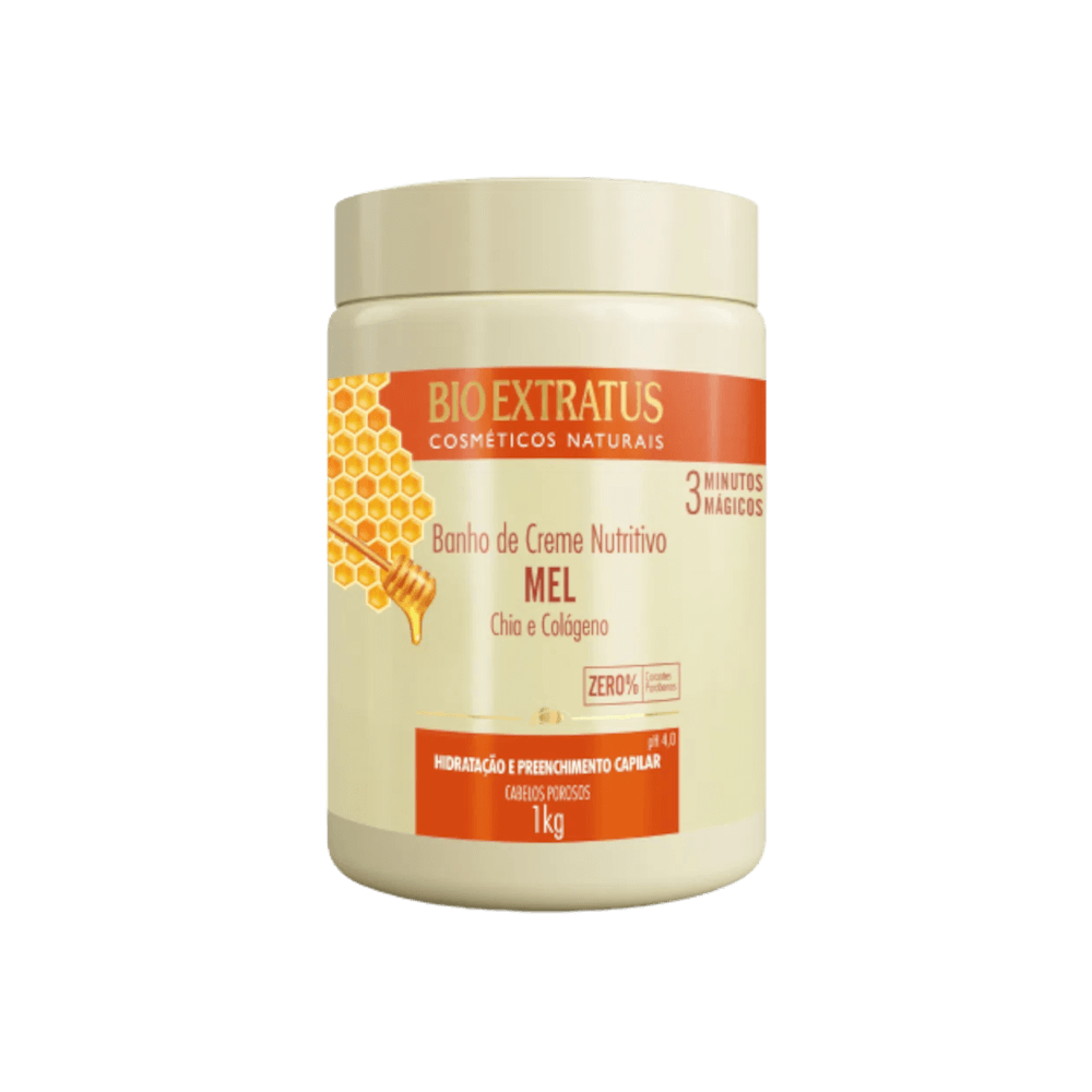 O Banho de Creme Nutritivo Bio Extratus Mel, Chia e Colágeno 1Kg é um tratamento capilar desenvolvido para hidratar profundamente e nutrir os fios, preenchendo as falhas da fibra capilar. Sua fórmula contém mel, chia e colágeno, que ajudam a repor umidade, massa e nutrientes, deixando os cabelos mais saudáveis e revitalizados.
