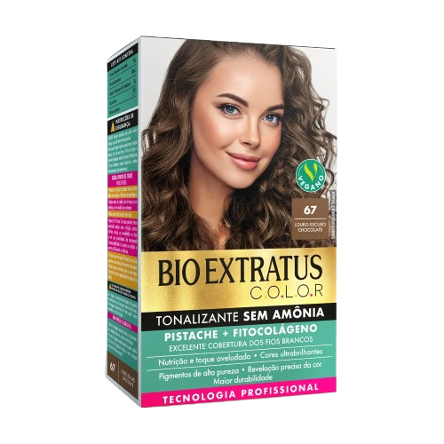 O Kit Tonalizante Bio Extratus Sem Amônia 67 Louro Escuro Chocolate é uma escolha perfeita para quem busca colorir os cabelos com suavidade e eficácia, sem agredir os fios. Sua fórmula é vegana, livre de amônia e metais pesados, garantindo um cuidado delicado e nutritivo para os cabelos.