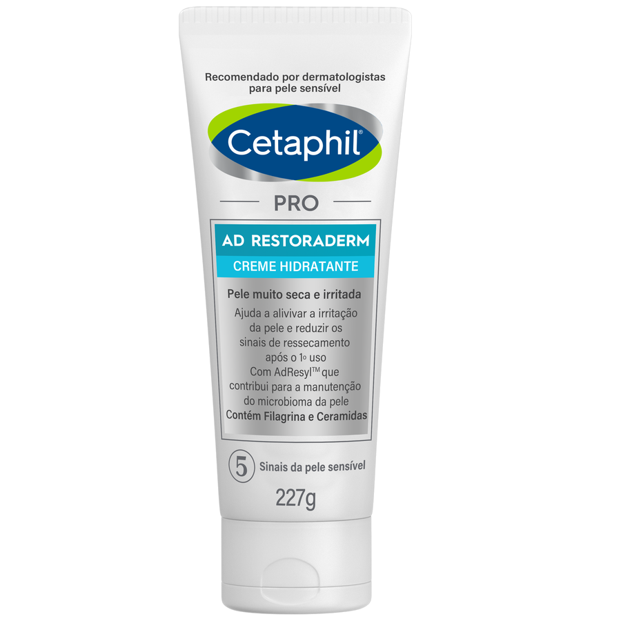 O Creme Hidratante Cetaphil Pro AD Restoraderm é especialmente formulado para peles muito secas, irritadas ou com tendência à dermatite atópica. Ele ajuda a restaurar a barreira cutânea em até 24 horas, aliviando a coceira e o ressecamento desde o primeiro uso. Sua fórmula contém ceramidas e a tecnologia patenteada AD-Resyl™, que auxilia na manutenção do microbioma da pele, promovendo hidratação profunda e duradoura.