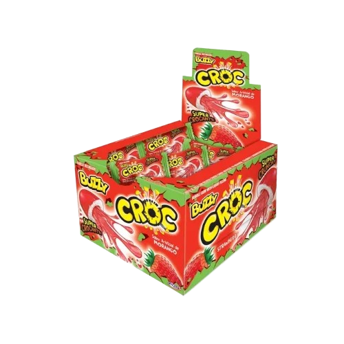 O Chiclete Buzzy Croc Morango é uma goma de mascar deliciosa, conhecida por sua casquinha crocante e recheio líquido sabor morango. Com uma explosão de sabor a cada mordida, é perfeito para quem busca um doce divertido e irresistível.