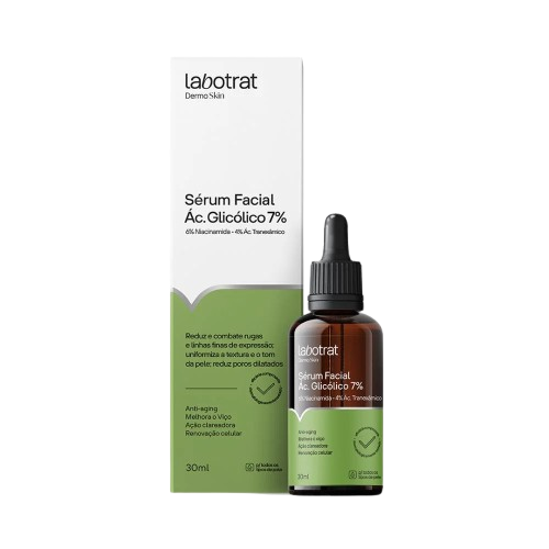 O Sérum Facial Labotrat Ácido Glicólico 30ml é formulado com 7% de Ácido Glicólico, um ativo poderoso que promove renovação celular, clareamento de manchas e uniformização do tom da pele. Sua fórmula de alta absorção também estimula a produção de colágeno, deixando a pele mais firme e hidratada.