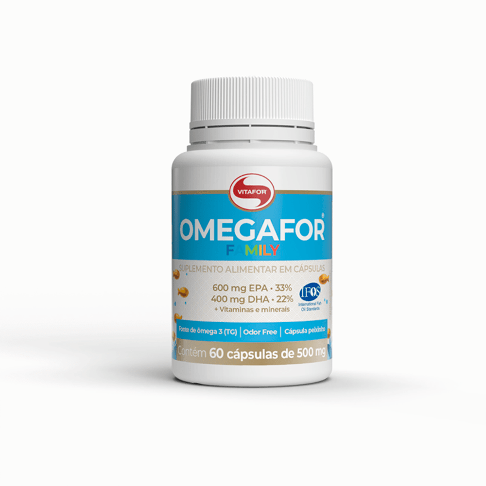 Com 500mg de ômega 3 por cápsula, contém ácidos graxos essenciais EPA e DHA, reconhecidos por seus benefícios à saúde. Embalagem com 60 cápsulas gelatinosas, produzidas pela marca Vitafor.