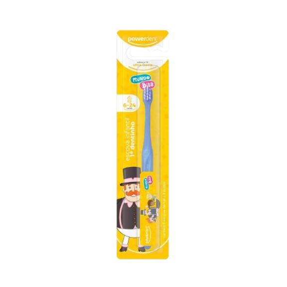 A Escova Dental Infantil Powerdent Ultra Macia 1 Dentinho Mundo Bita foi desenvolvida especialmente para bebês de 6 a 24 meses. Ela possui cerdas ultra macias e cabeça compacta, projetadas para limpar os primeiros dentinhos sem machucar as gengivas sensíveis. O cabo anatômico mais longo permite que os pais realizem a escovação com segurança e conforto. Além disso, é livre de BPA, garantindo um uso seguro para os pequenos.
