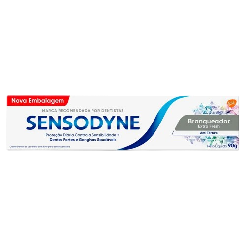 O Creme Dental Sensodyne Branqueador 90g possui fórmula com nitrato de potássio e fluoreto de sódio, que ajudam a aliviar a sensibilidade dentária e prevenir cáries. Ele remove manchas superficiais dos dentes, restaurando seu brilho natural, e oferece proteção diária para dentes sensíveis. Seu sabor refrescante de menta proporciona uma experiência agradável durante o uso.