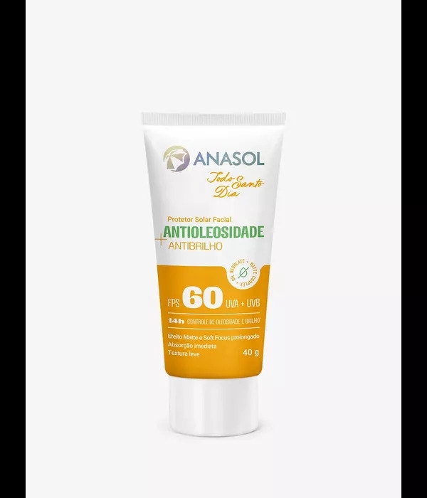 Carregando...O Anasol Protetor Solar Facial Antioleosidade FPS 60 é a escolha perfeita para quem busca alta proteção solar sem abrir mão do controle da oleosidade. Desenvolvido para peles mistas a oleosas, este protetor oferece um fator de proteção solar (FPS) 60 contra os raios UVA e UVB, prevenindo o fotoenvelhecimento, queimaduras solares e o surgimento de manchas.