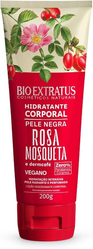 O Hidratante Corporal Rosa Mosqueta da Bio Extratus combina os benefícios da rosa mosqueta, rica em nutrientes, com o DermCafé, um potente antioxidante. Juntos, esses ingredientes formam uma emulsão que hidrata profundamente, protege e proporciona uma pele perfumada, com mais viço, brilho e jovialidade. Ideal para uso diário, ele ajuda a evitar e reverter sinais indesejados na pele, como ressecamento e falta de luminosidade.