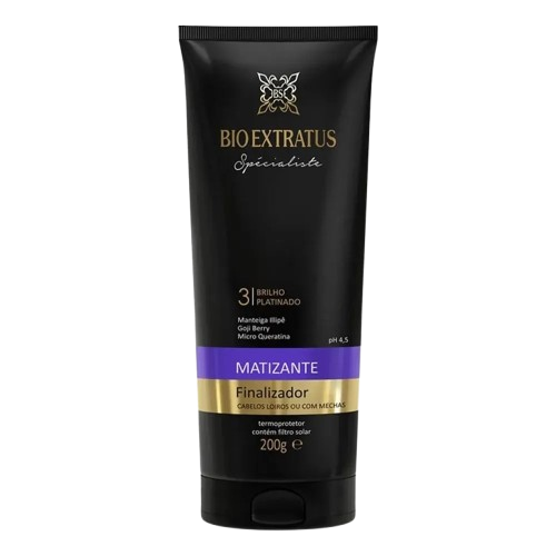 O Finalizador Bio Extratus Spécialiste Matizante 200g é um produto incrível para cabelos loiros, com mechas ou brancos, oferecendo neutralização dos tons amarelados e alaranjados. Sua fórmula contém o pigmento Acid Violet, que proporciona brilho platinado desde a primeira aplicação, além de ativos antioxidantes, hidratantes e reconstrutores que promovem um cuidado completo.