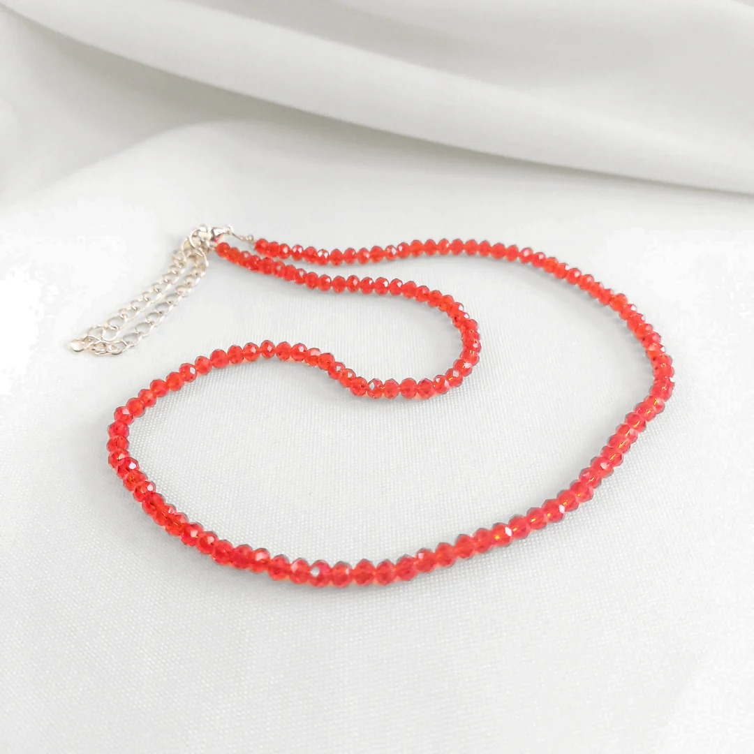 Evitar contato com água, perfumes e outros produtos químicos para preservar a durabilidade e o brilho das miçangas. Guardar em local seco e longe da luz direta.