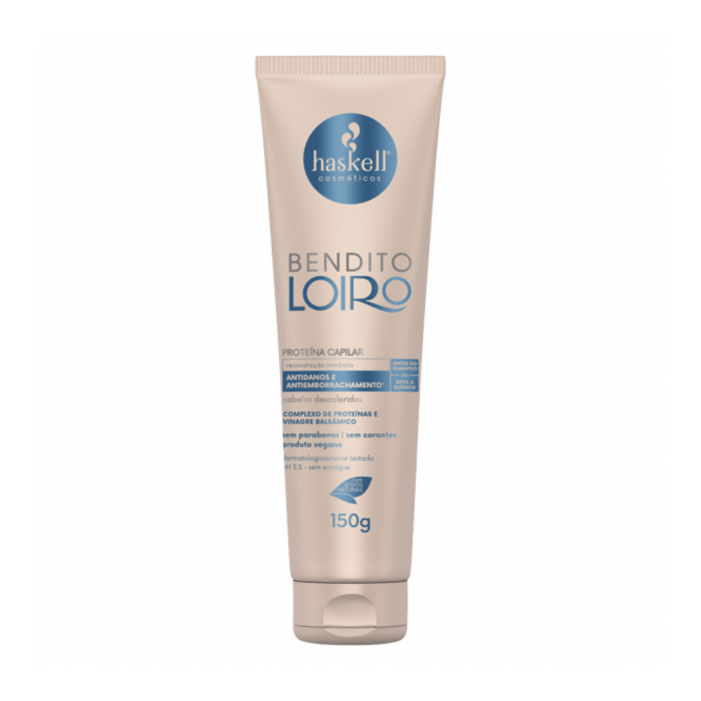 A Proteína Capilar Bendito Loiro Haskell 150g é um tratamento intensivo desenvolvido para cabelos descoloridos. Sua fórmula contém um poderoso complexo de proteínas e vinagre balsâmico, que juntos promovem a regeneração capilar, reduzindo o risco de quebra e protegendo os fios de danos futuros.