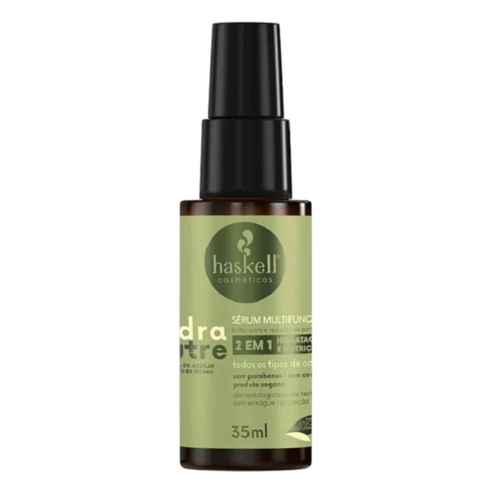 O Sérum Hidranutre Haskell 35ml é um produto multifuncional que combina hidratação e nutrição para todos os tipos de cabelo. Ele é ideal para revitalizar os fios, promovendo disciplina, brilho e maciez, enquanto protege contra os danos causados pelo sol.