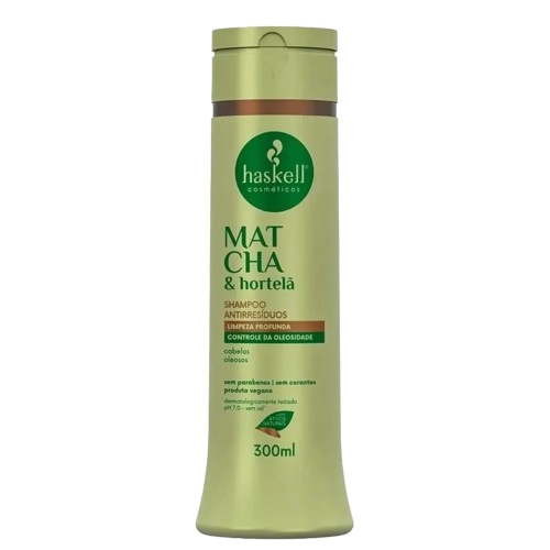 O Shampoo Antirresíduos Matcha & Alecrim Haskell 300ml é um tratamento capilar desenvolvido para limpeza profunda, controle da oleosidade e combate à caspa. Sua fórmula contém extrato de matcha e extrato de alecrim, que ajudam a purificar os fios, estimular a circulação sanguínea no couro cabeludo e fortalecer os cabelos.