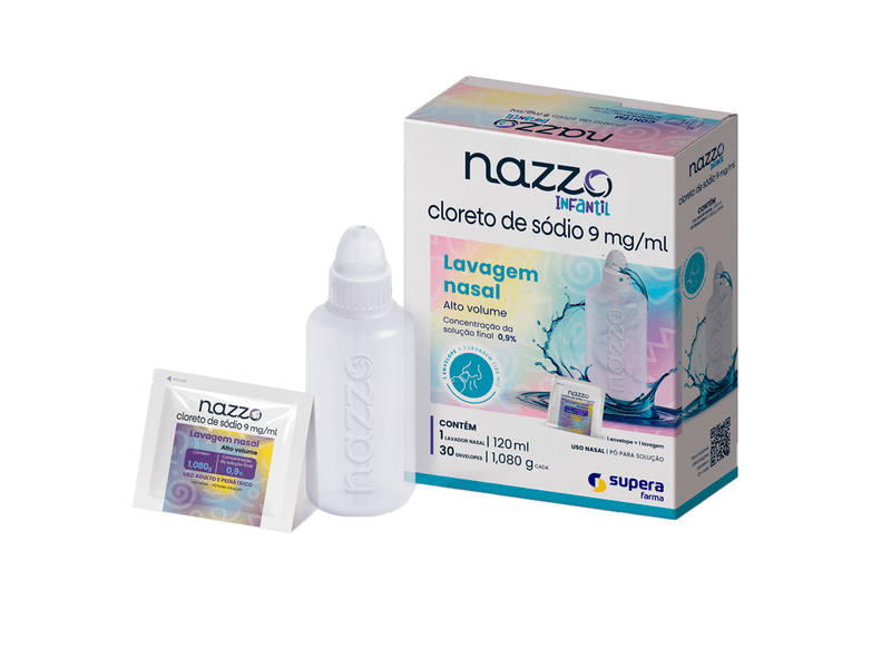 O Nazzo Kit 0,9% (30 envelopes – Alto Volume Infantil) é uma solução nasal isotônica desenvolvida para a higienização profunda das vias respiratórias de crianças. Ele contém cloreto de sódio 9mg/ml, que auxilia na remoção de impurezas, alérgenos e excesso de muco, proporcionando alívio da congestão nasal e melhora na respiração.