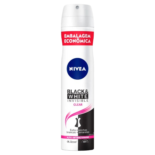 O Desodorante Antitranspirante Aerossol Nivea Invisible Black & White Clear oferece proteção eficaz contra suor e mau odor por até 72 horas. Sua fórmula inovadora evita manchas brancas em roupas escuras e manchas amarelas em roupas claras, garantindo conforto e segurança ao longo do dia. Além disso, é dermatologicamente testado e livre de álcool etílico.