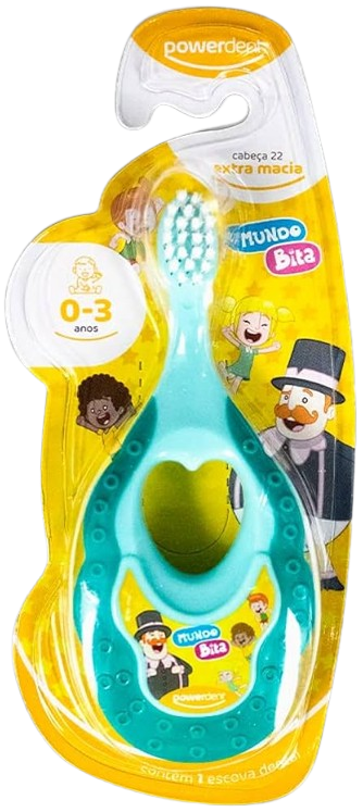 A Escova Dental Infantil Powerdent Mordedor Mundo Bita foi desenvolvida especialmente para crianças de 0 a 3 anos. Ela possui cerdas extra macias que garantem uma limpeza suave, sem machucar as gengivas sensíveis dos pequenos. O cabo anatômico emborrachado também funciona como mordedor, ajudando a aliviar o desconforto causado pelo nascimento dos primeiros dentinhos. É livre de BPA e projetada para tornar o momento da escovação mais agradável e seguro.