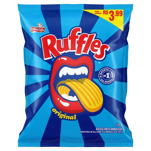 A Ruffles Original 32g é a clássica batata frita ondulada, conhecida por sua crocância irresistível e sabor autêntico de batata. É perfeita para quem busca um snack prático e delicioso para qualquer momento do dia.