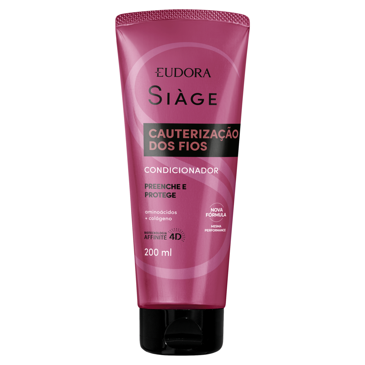 Após lavar os cabelos com o shampoo da linha, aplique o condicionador no comprimento e nas pontas dos fios. Massageie suavemente, deixe agir por 1 minuto e enxágue bem. Para melhores resultados, utilize os demais produtos da linha Siàge Cauterização dos Fios.